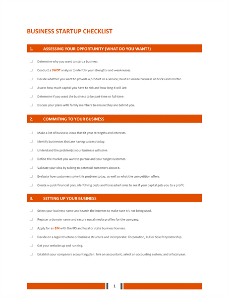 Free Printable Business Startup Checklist Plan Template Pdf Oad