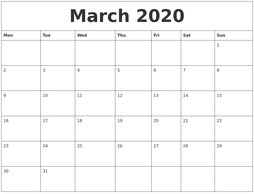 Blank Calendar 2020 Template Free Printable Blank Monthly Calendars