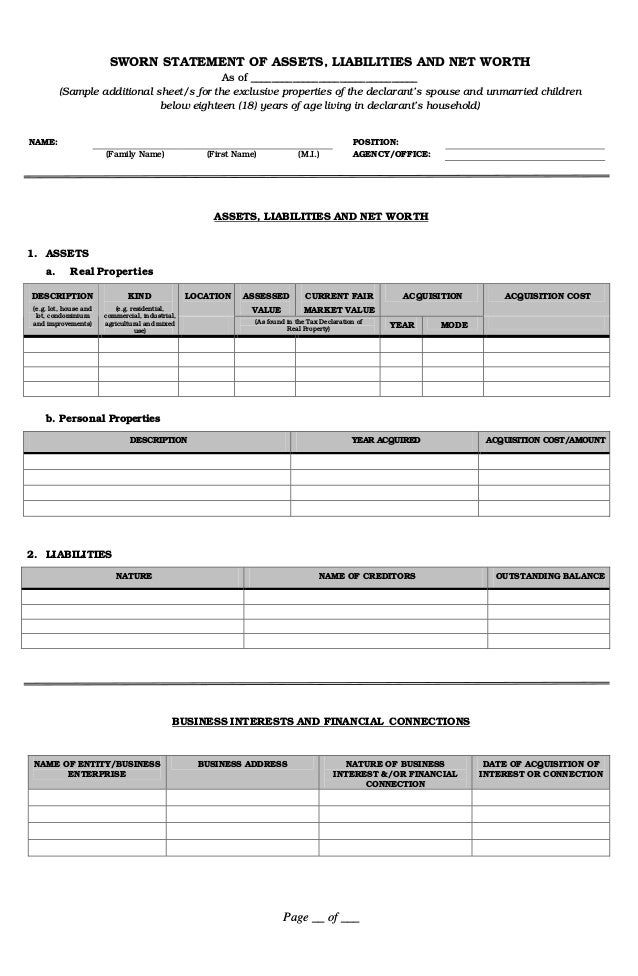 Sworn Statement Of Assets Liabilities And Net Worth Download