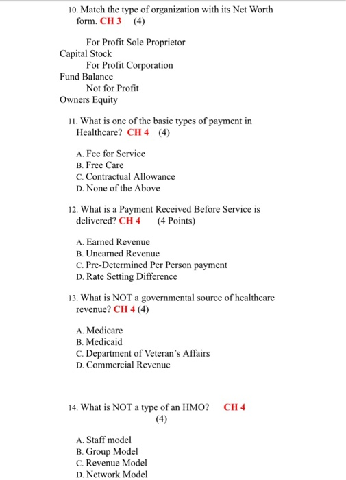 Solved 10 Match The Type Of Organization With Its Net Wo