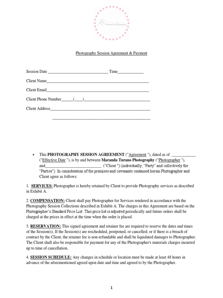 Photography Session Agreement Template Pdf Templates Jotform