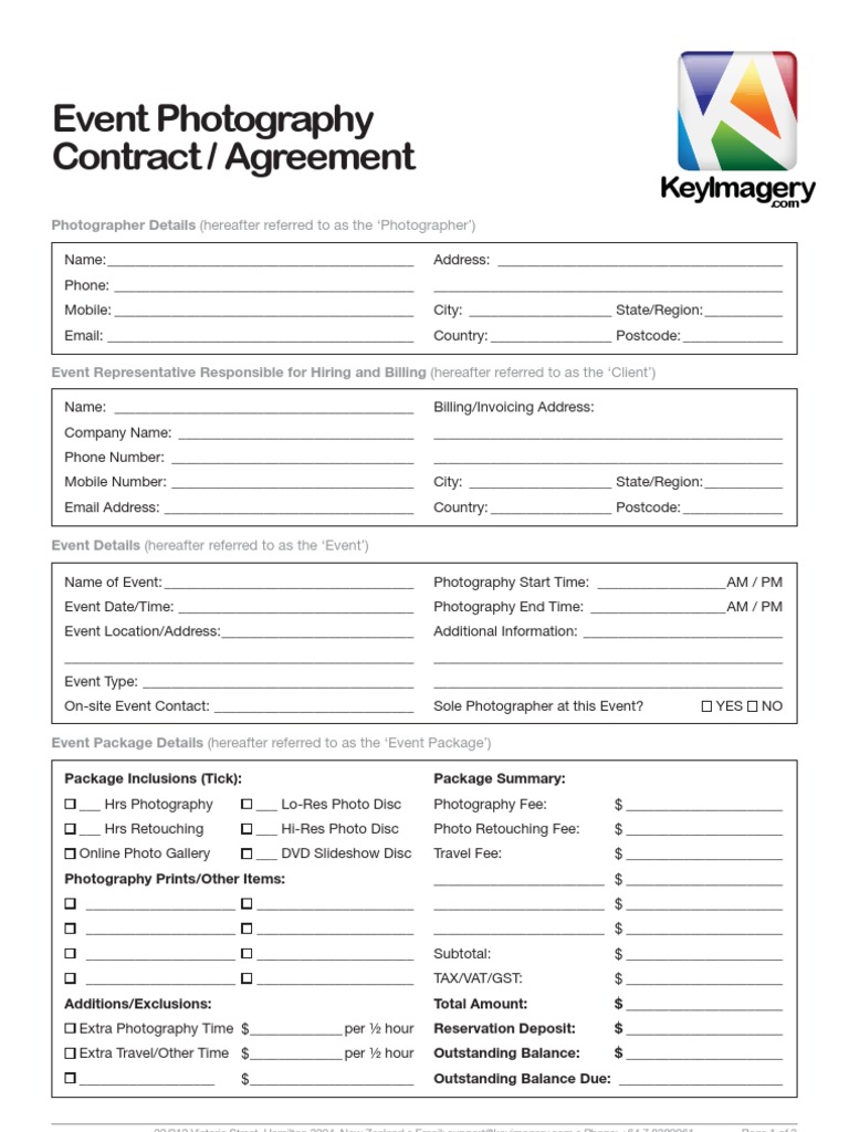 Event Photography Agreement Free Download