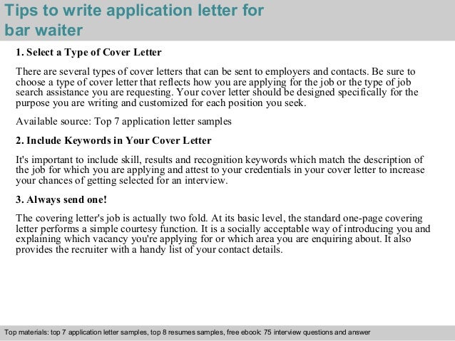 Waiter Cover Letter Sample Cover Letter Templates Examples